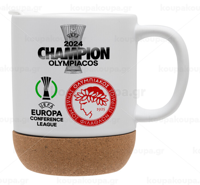 Olympiacos UEFA Europa Conference League Champion 2024, Κούπα, κεραμική με βάση φελού και καπάκι (ΜΑΤ), 330ml