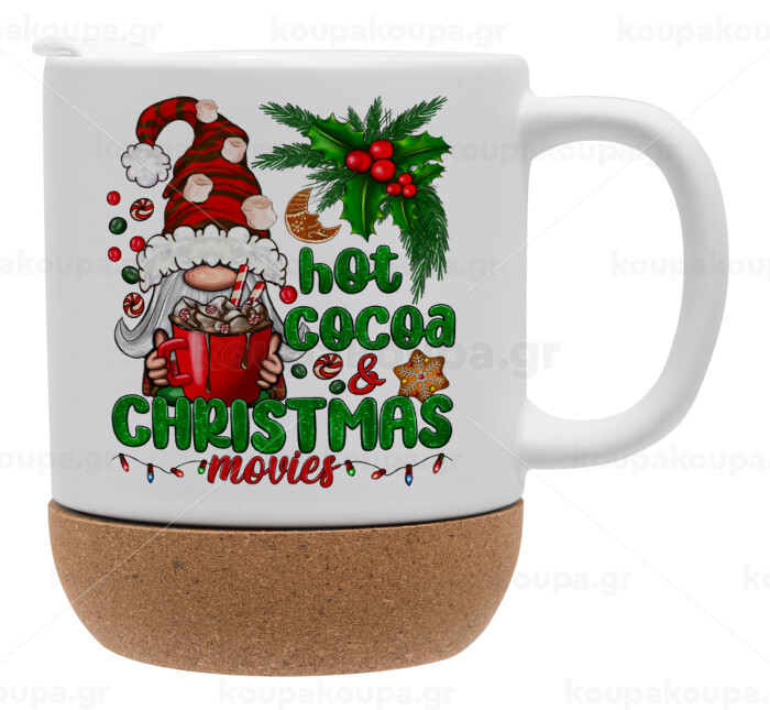 Hot cocoa and Christmas movies, Κούπα, κεραμική με βάση φελού και καπάκι (ΜΑΤ), 330ml