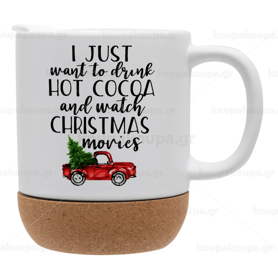 I just want to drink hot cocoa and watch christmas movies pickup car, Κούπα, κεραμική με βάση φελού και καπάκι (ΜΑΤ), 330ml