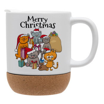 Merry Christmas Cats, Κούπα, κεραμική με βάση φελού και καπάκι (ΜΑΤ), 330ml