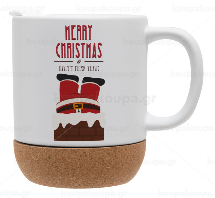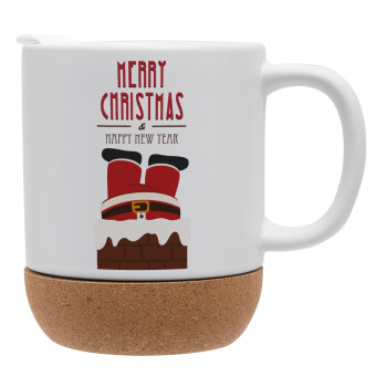 Merry christmas chimney, Κούπα, κεραμική με βάση φελού και καπάκι (ΜΑΤ), 330ml