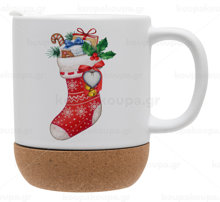 Xmas boot, Κούπα, κεραμική με βάση φελού και καπάκι (ΜΑΤ), 330ml