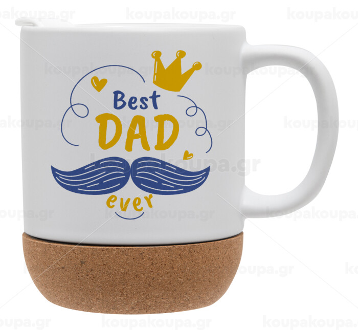 Best dad ever ο Βασιλιάς, Κούπα, κεραμική με βάση φελού και καπάκι (ΜΑΤ), 330ml