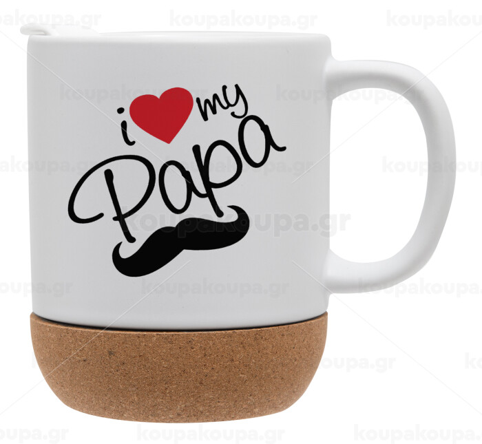 I Love my papa, Κούπα, κεραμική με βάση φελού και καπάκι (ΜΑΤ), 330ml