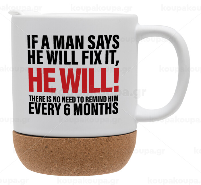 If a man says he will fix it He will There is no need to remind him every 6 months, Κούπα, κεραμική με βάση φελού και καπάκι (ΜΑΤ), 330ml