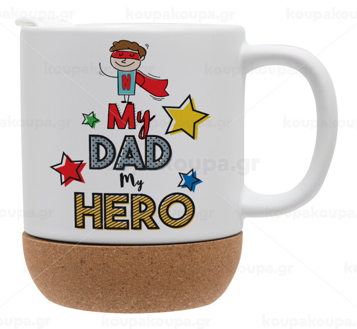 My Dad, my Hero!!!, Κούπα, κεραμική με βάση φελού και καπάκι (ΜΑΤ), 330ml