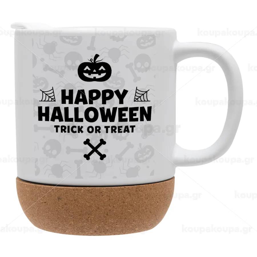 Happy Halloween pumpkin, Κούπα, κεραμική με βάση φελού και καπάκι (ΜΑΤ), 330ml