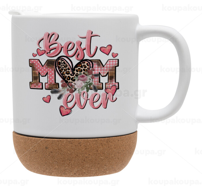 Best mom ever Mother's Day, Κούπα, κεραμική με βάση φελού και καπάκι (ΜΑΤ), 330ml