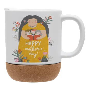 Cute mother reading book, happy mothers day, Κούπα, κεραμική με βάση φελού και καπάκι (ΜΑΤ), 330ml