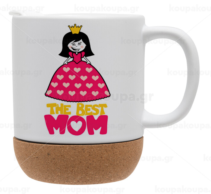 The Best Mom Queen, Κούπα, κεραμική με βάση φελού και καπάκι (ΜΑΤ), 330ml