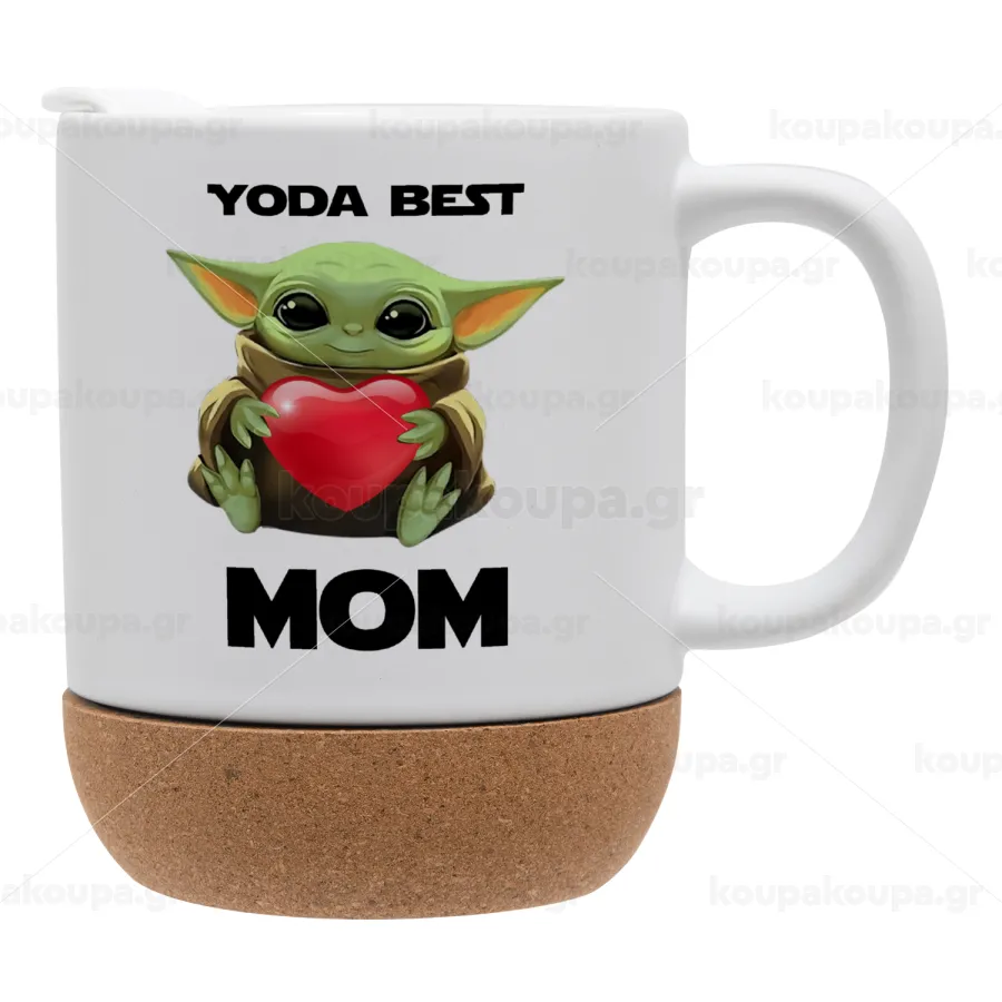 Yoda Best mom, Κούπα, κεραμική με βάση φελού και καπάκι (ΜΑΤ), 330ml