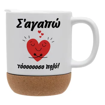 Σ΄αγαπώ τόοοοσο πολύ καρδιά, Κούπα, κεραμική με βάση φελού και καπάκι (ΜΑΤ), 330ml