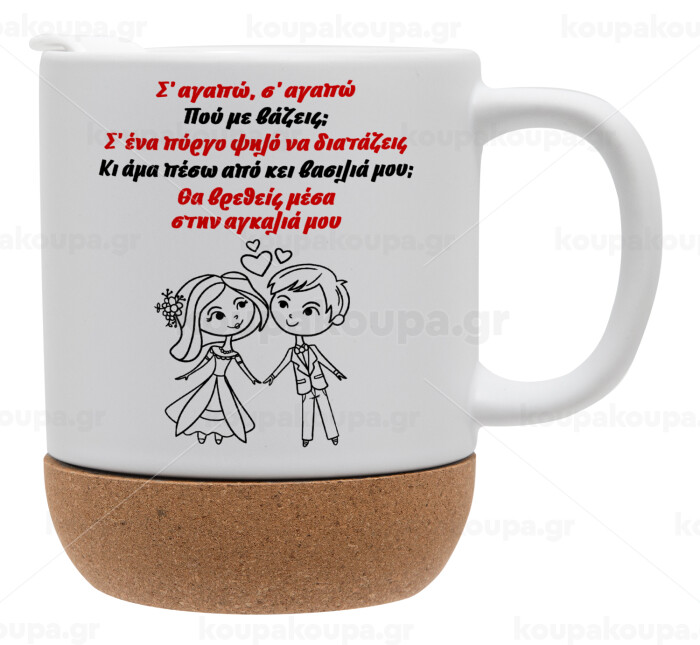 Σ΄ αγαπώ σ΄ αγαπώ που με βάζεις, Κούπα, κεραμική με βάση φελού και καπάκι (ΜΑΤ), 330ml