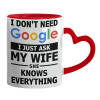 I don't need Google, just ask my WIFE, Κούπα, κεραμική με βάση φελού και καπάκι (ΜΑΤ), 330ml