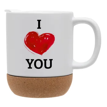 I Love You, Κούπα, κεραμική με βάση φελού και καπάκι (ΜΑΤ), 330ml