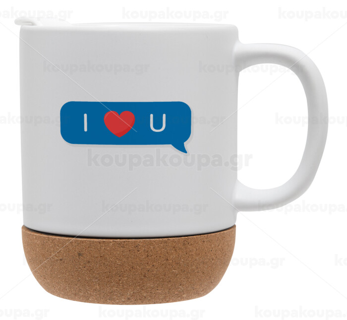 I Love You text message, Κούπα, κεραμική με βάση φελού και καπάκι (ΜΑΤ), 330ml