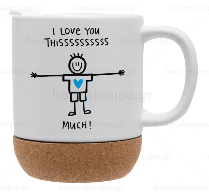 I Love you thissss much (boy)..., Κούπα, κεραμική με βάση φελού και καπάκι (ΜΑΤ), 330ml