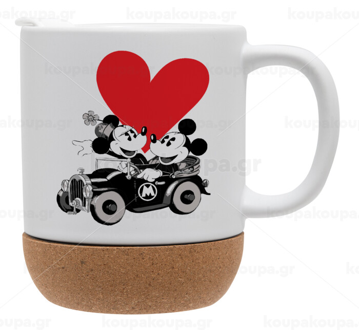 Mickey & Minnie love car, Κούπα, κεραμική με βάση φελού και καπάκι (ΜΑΤ), 330ml