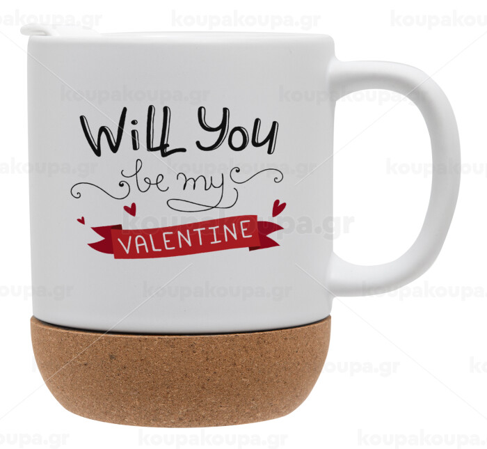Will you be my Valentine???, Κούπα, κεραμική με βάση φελού και καπάκι (ΜΑΤ), 330ml