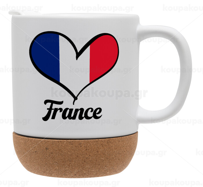 France flag, Κούπα, κεραμική με βάση φελού και καπάκι (ΜΑΤ), 330ml