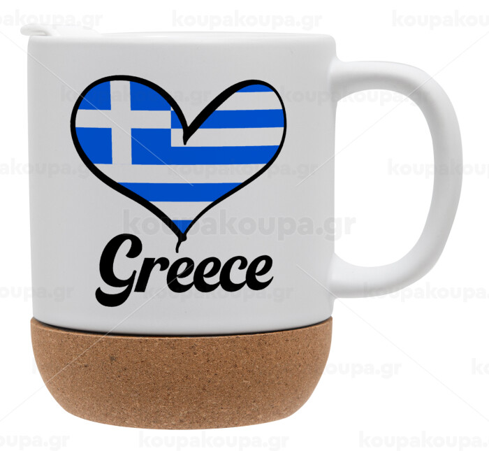 Greece flag, Κούπα, κεραμική με βάση φελού και καπάκι (ΜΑΤ), 330ml