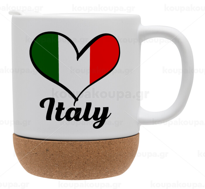 Italy flag, Κούπα, κεραμική με βάση φελού και καπάκι (ΜΑΤ), 330ml