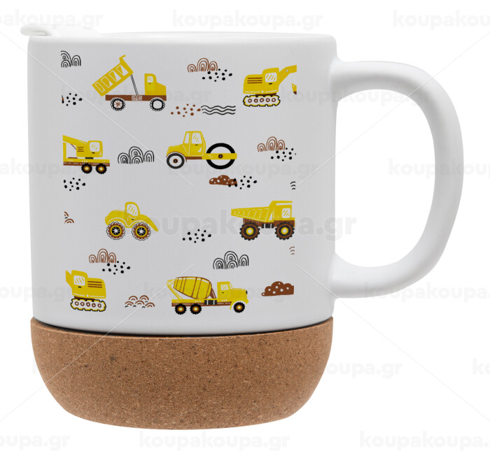 Αμαξάκια φορτωτές και μπουλντόζες, Κούπα, κεραμική με βάση φελού και καπάκι (ΜΑΤ), 330ml
