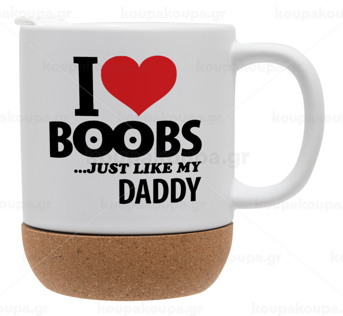 I Love boobs ...just like my daddy, Κούπα, κεραμική με βάση φελού και καπάκι (ΜΑΤ), 330ml