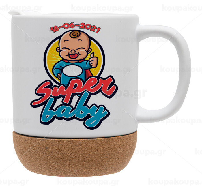 Super baby., Κούπα, κεραμική με βάση φελού και καπάκι (ΜΑΤ), 330ml