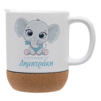 Η νονά μου, ελεφαντάκι γαλάζιο, Κούπα, κεραμική με βάση φελού και καπάκι (ΜΑΤ), 330ml