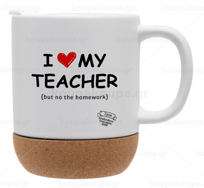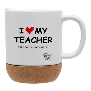 i love my teacher but no the homework, Κούπα, κεραμική με βάση φελού και καπάκι (ΜΑΤ), 330ml