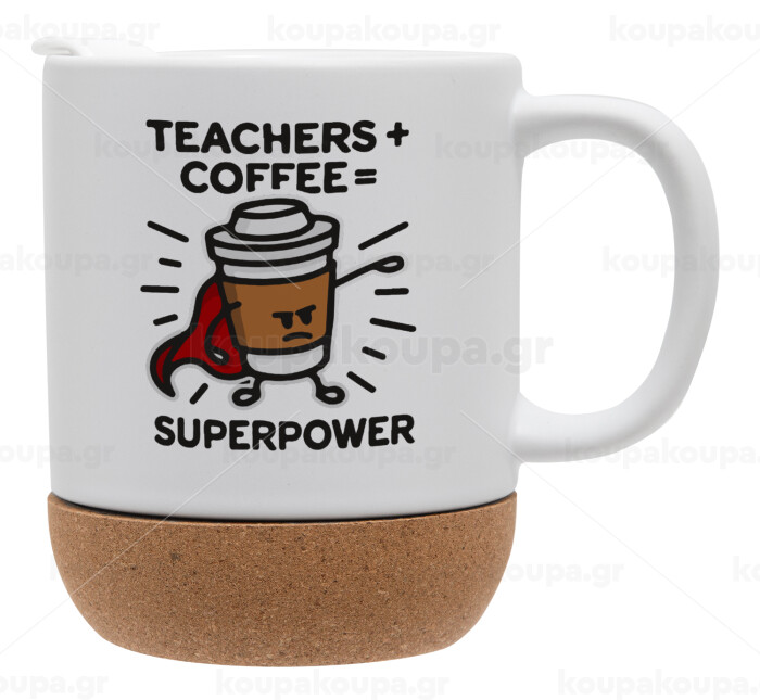 Teacher Coffee Super Power, Κούπα, κεραμική με βάση φελού και καπάκι (ΜΑΤ), 330ml
