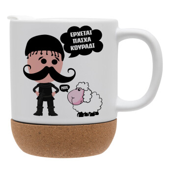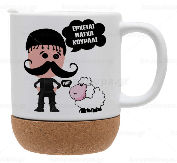 Κρητικός "Έρχεται Πάσχα κουράδι", Κούπα, κεραμική με βάση φελού και καπάκι (ΜΑΤ), 330ml