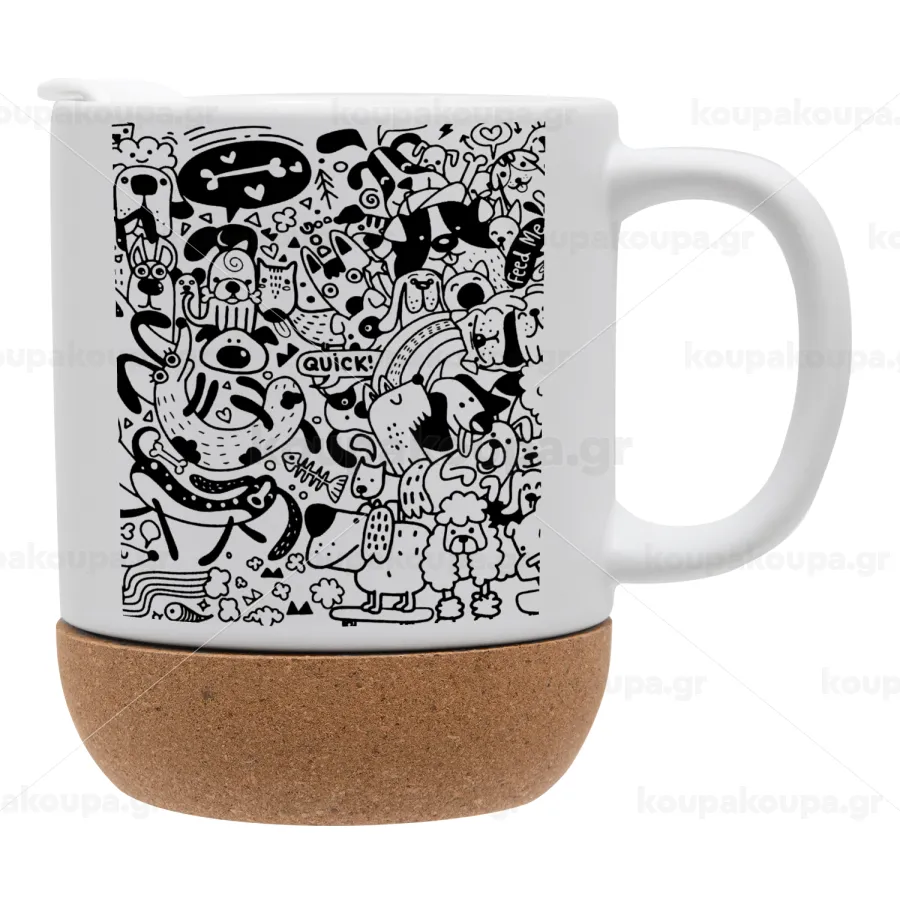 Σκυλάκια, Κούπα, κεραμική με βάση φελού και καπάκι (ΜΑΤ), 330ml