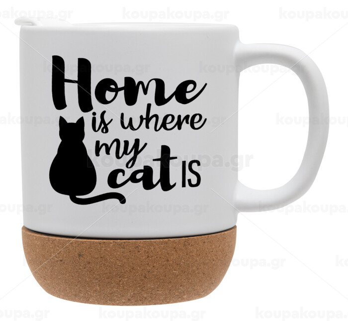 Home is where my cat is!, Κούπα, κεραμική με βάση φελού και καπάκι (ΜΑΤ), 330ml