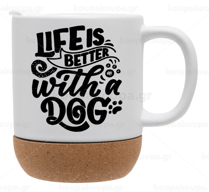 Life is better with a DOG, Κούπα, κεραμική με βάση φελού και καπάκι (ΜΑΤ), 330ml