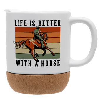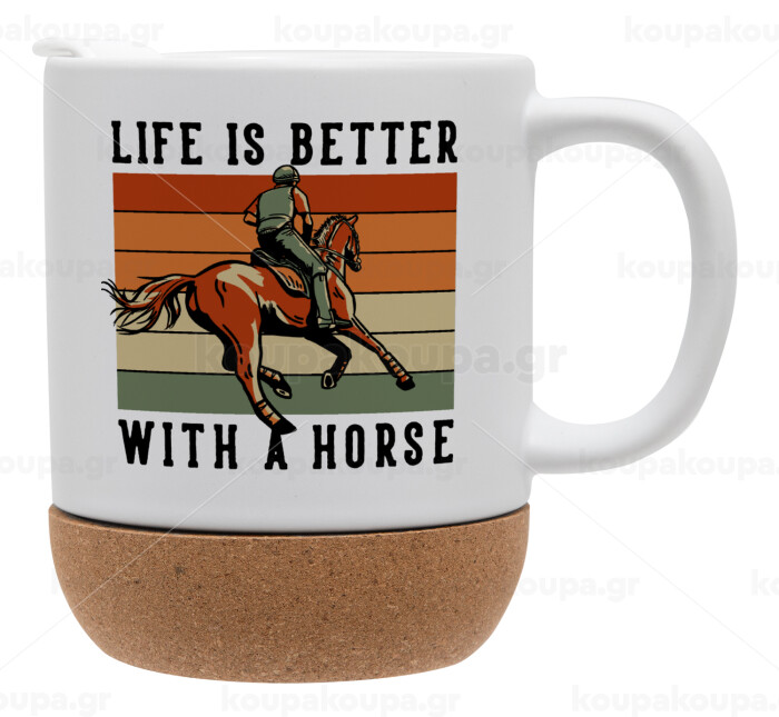 Life is Better with a Horse, Κούπα, κεραμική με βάση φελού και καπάκι (ΜΑΤ), 330ml