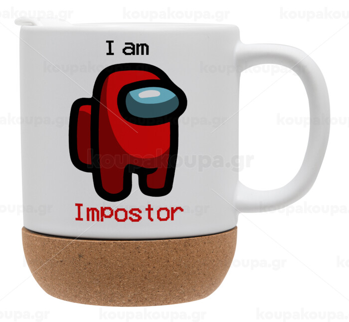 Among US i am impostor, Κούπα, κεραμική με βάση φελού και καπάκι (ΜΑΤ), 330ml