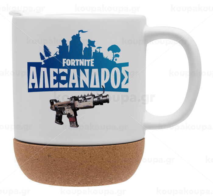 Fortnite with gun με το όνομα σου, Κούπα, κεραμική με βάση φελού και καπάκι (ΜΑΤ), 330ml