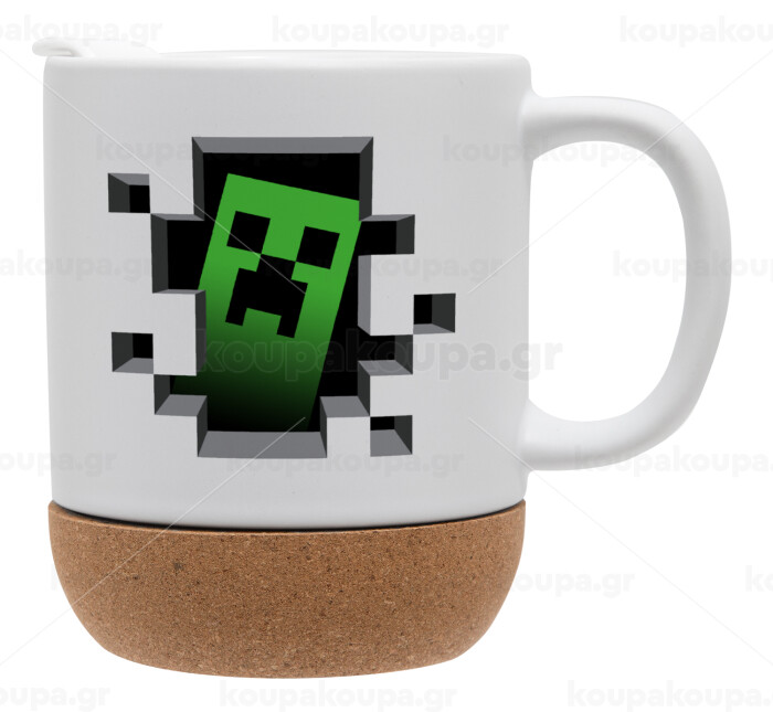 Minecraft creeper, Κούπα, κεραμική με βάση φελού και καπάκι (ΜΑΤ), 330ml