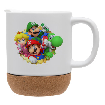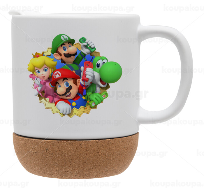 Super mario and Friends, Κούπα, κεραμική με βάση φελού και καπάκι (ΜΑΤ), 330ml