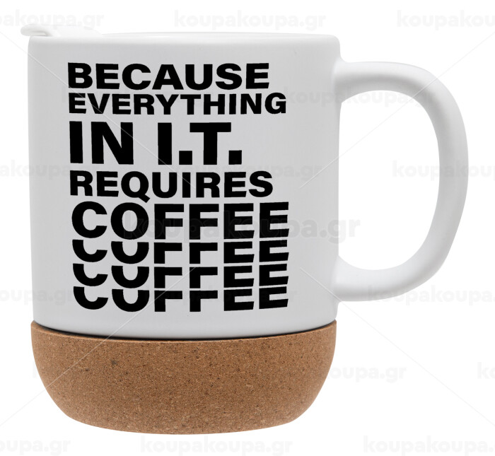 Because everything in I.T. requires coffee, Κούπα, κεραμική με βάση φελού και καπάκι (ΜΑΤ), 330ml