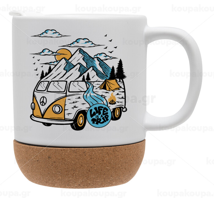 Life is a trip, Κούπα, κεραμική με βάση φελού και καπάκι (ΜΑΤ), 330ml