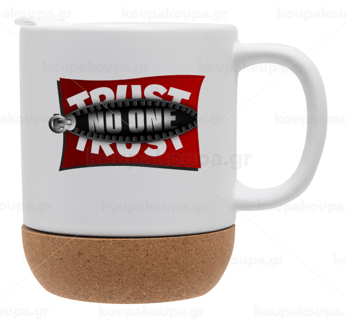 Trust no one... (zipper), Κούπα, κεραμική με βάση φελού και καπάκι (ΜΑΤ), 330ml