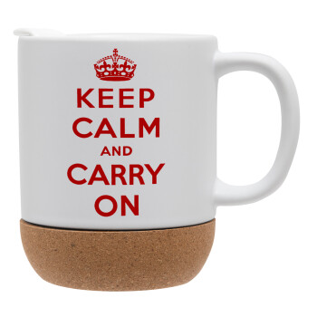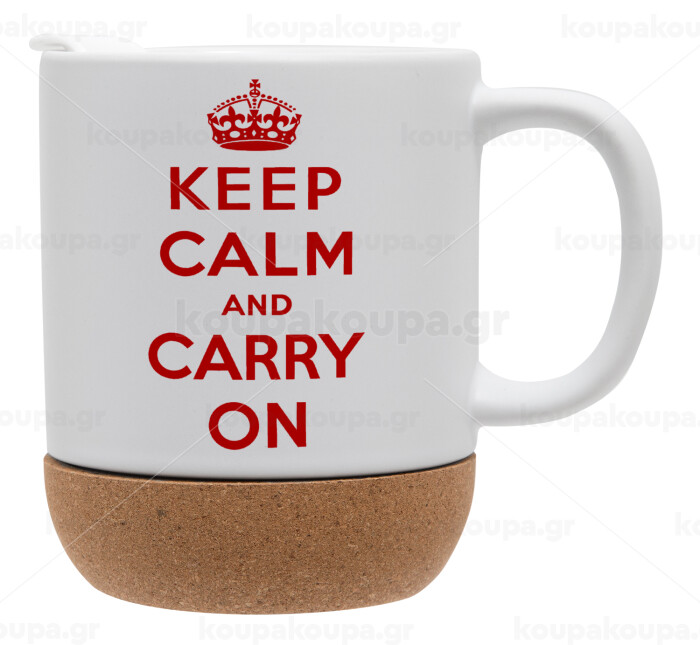 KEEP CALM  and carry on, Κούπα, κεραμική με βάση φελού και καπάκι (ΜΑΤ), 330ml
