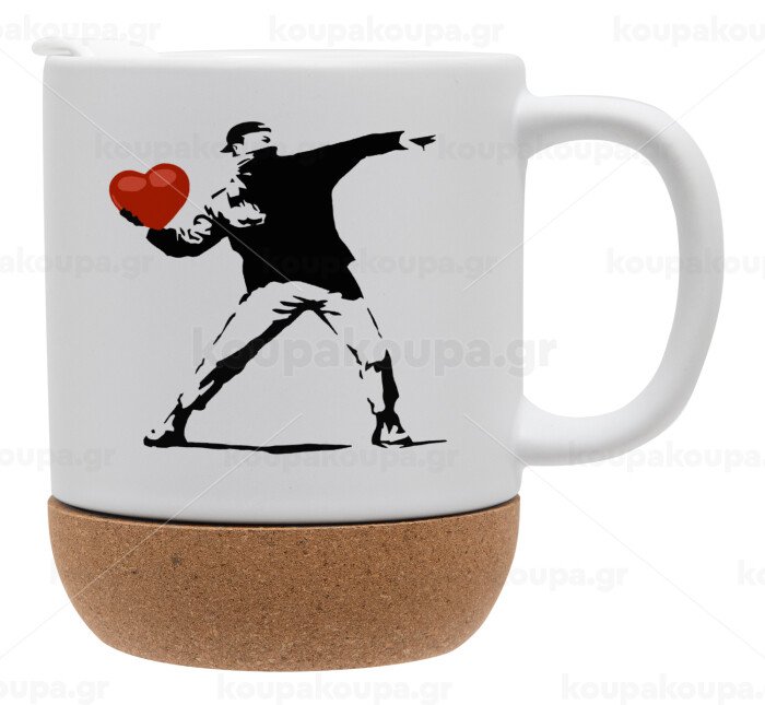 Banksy (The heart thrower), Κούπα, κεραμική με βάση φελού και καπάκι (ΜΑΤ), 330ml