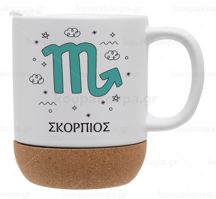 Ζώδια Σκορπιός, Κούπα, κεραμική με βάση φελού και καπάκι (ΜΑΤ), 330ml