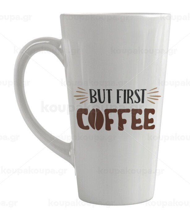 But first Coffee, Κούπα κωνική Latte Μεγάλη, κεραμική, 450ml