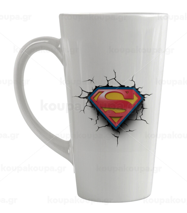 Superman cracked, Κούπα κωνική Latte Μεγάλη, κεραμική, 450ml