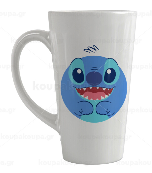 Lilo & Stitch blue, Κούπα κωνική Latte Μεγάλη, κεραμική, 450ml